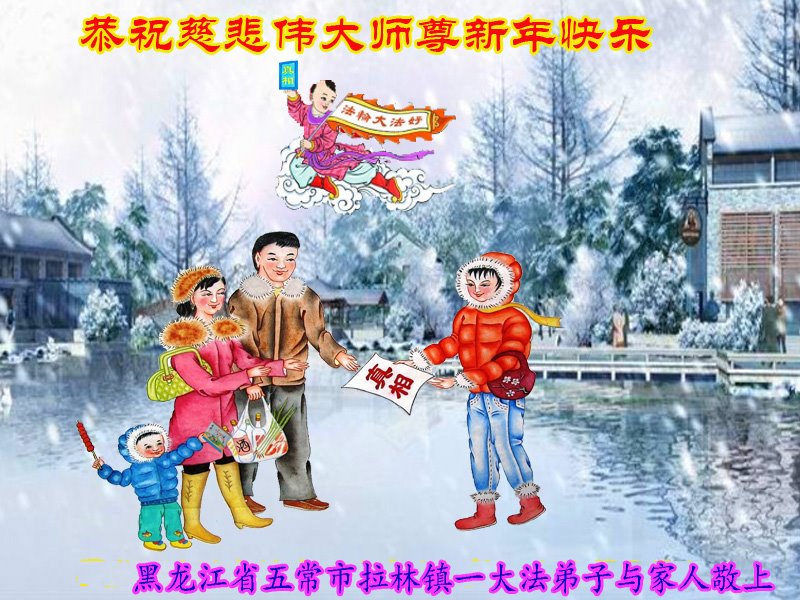 【明慧网二零二三年一月十九日】 黑龙江省哈尔滨市五常市拉林镇一大法弟子及家人恭祝师尊新年快乐!
