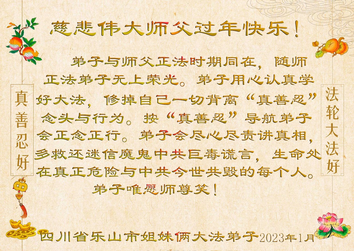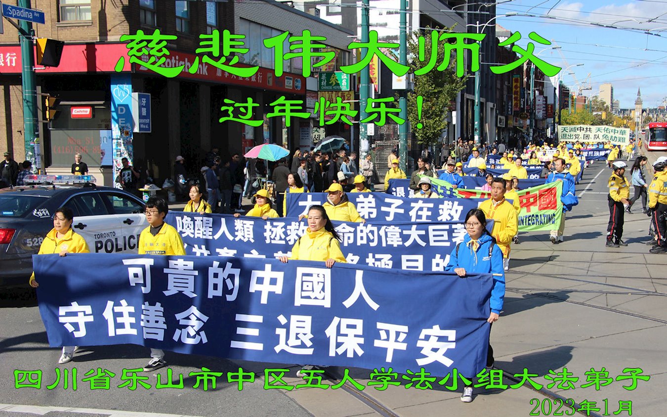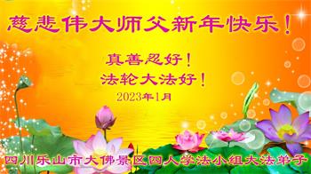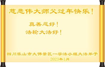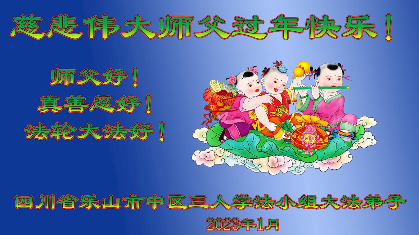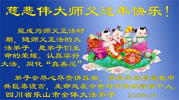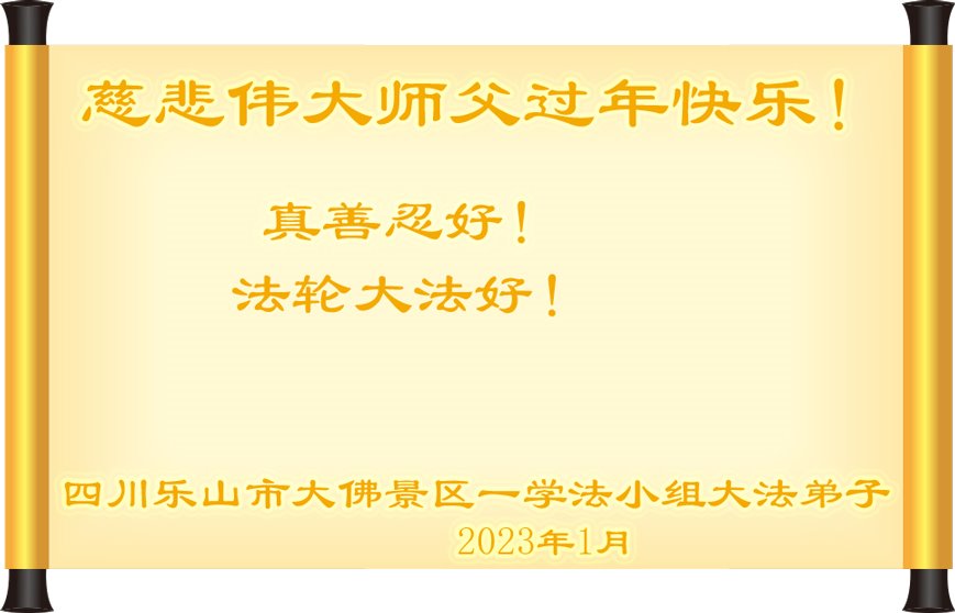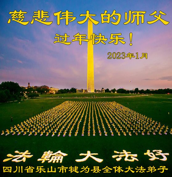 【明慧网二零二三年一月十九日】 四川省乐山市犍为县全体大法弟子恭祝慈悲伟大师父过年快乐!