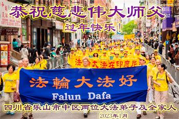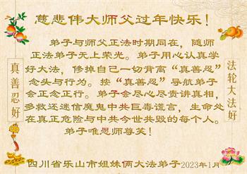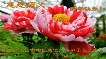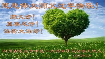 四川省乐山市中区两位大法弟子及全家人恭祝慈悲伟大师父新年快乐!