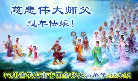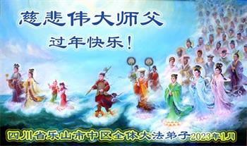 四川省乐山市中区全体大法弟子恭祝慈悲伟大师父过年快乐!