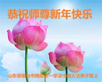 山东省烟台市栖霞市一学法小组大法弟子恭祝师尊新年快乐!