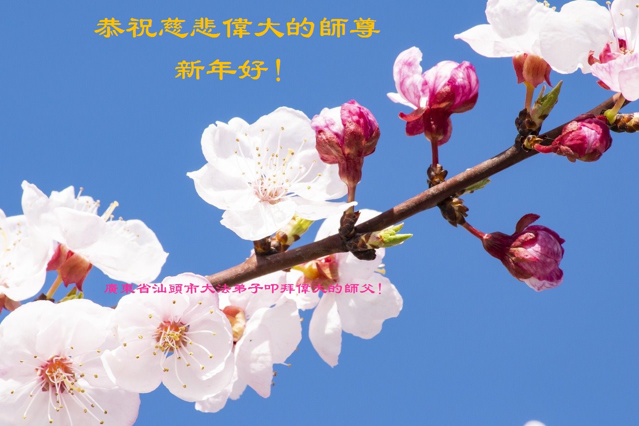 广东河源大法弟子提前给师尊拜年,祝师父新年快乐! 弟子紧随师父正法進程,尽量救度世人,不论身处何地,坚修大法,去掉执着,圆满随师还! 广东省汕头市大法弟子恭祝慈悲伟大的师尊新年快乐!