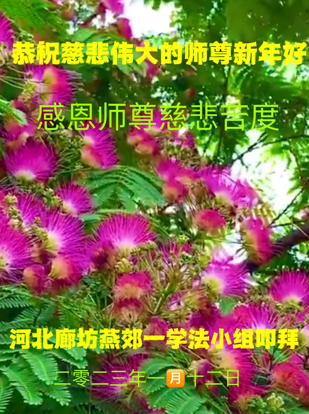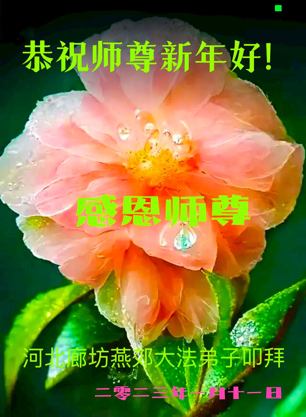 新年佳节来临之际,恭祝师尊新年快乐!感谢伟大师尊的慈悲救度! 二零二三年一月十二号 河北省廊坊市燕郊全体大法弟子恭祝慈悲伟大的师尊新年快乐!