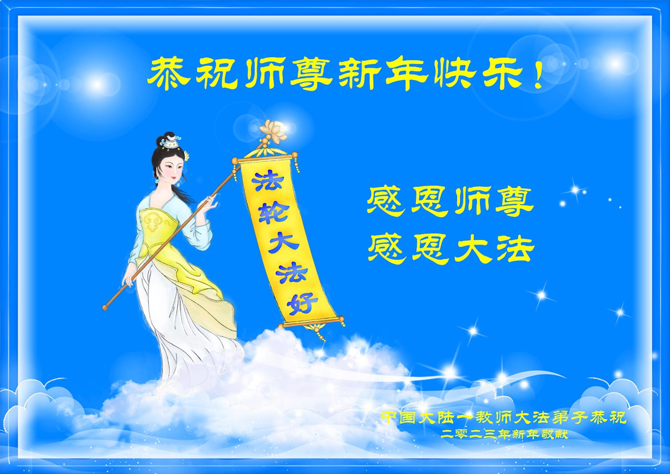 恭祝慈悲伟大的师尊过年好! 弟子一定抓紧最后所剩无几的时间实修自己,抓紧救人,圆满跟师父回家! 沈阳一教师大法弟子敬上 2023年元月 中国大陆教育界一学法小组大法弟子恭祝师尊新年快乐!