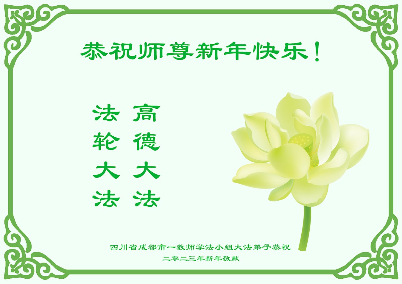 四川省成都市一教师学法小组大法弟子恭祝师尊新年快乐!