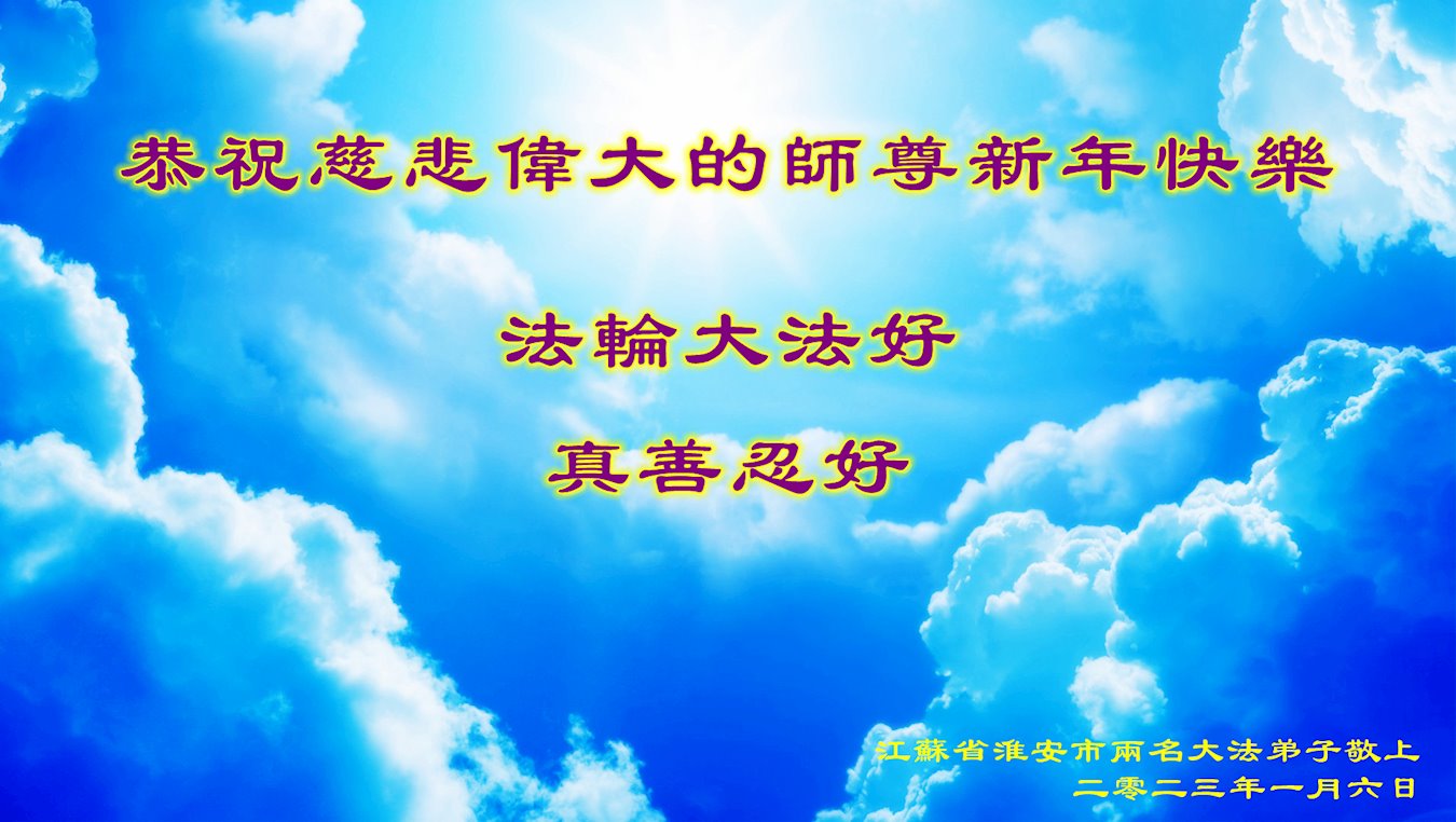 江苏省淮安市两名大法弟子恭祝慈悲伟大的师尊新年快乐!