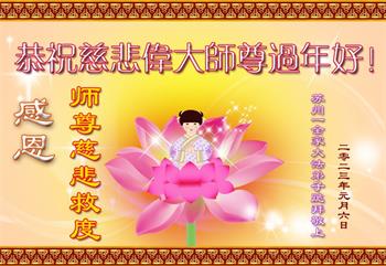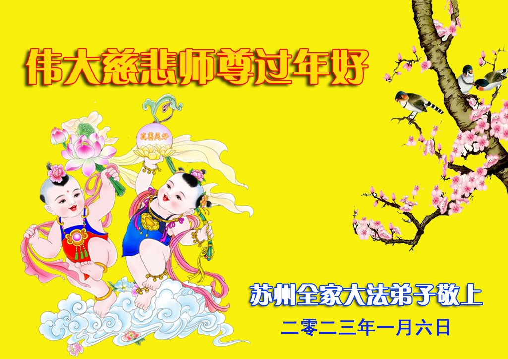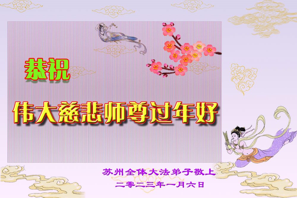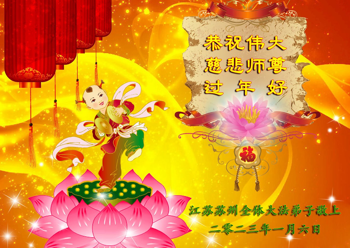 恭祝慈悲伟大的师尊过年好!感恩师尊慈悲救度! 江苏省苏州市全体大法弟子恭祝师尊新年好!