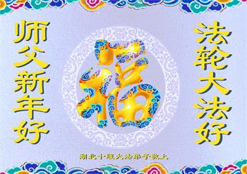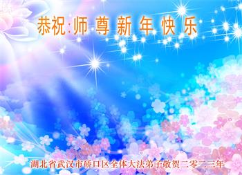 湖北省武汉市硚口区全体大法弟子恭祝慈悲伟大的师尊新年快乐! 湖北省荆门市钟祥市一学法小组大法弟子恭祝师父新年好!