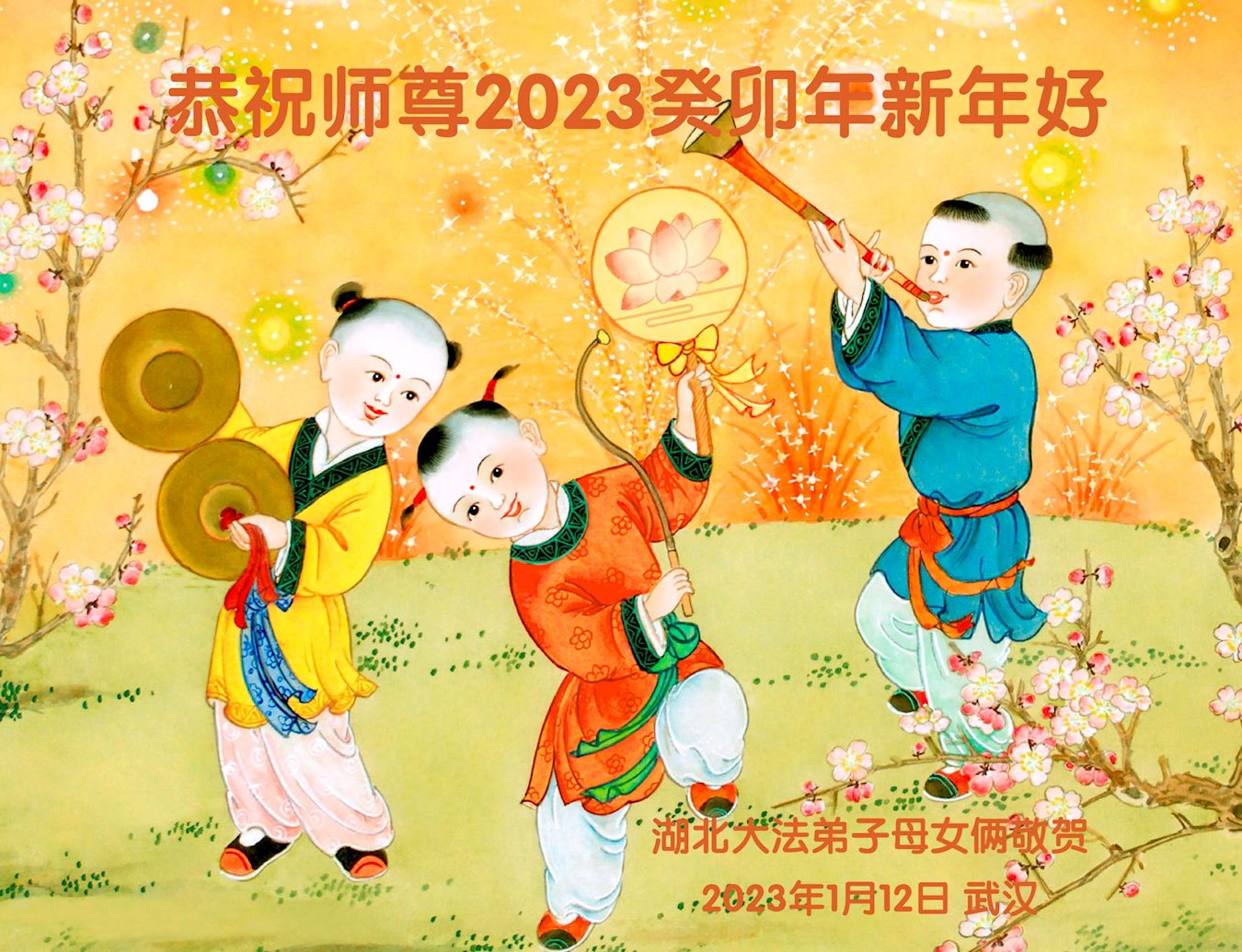 湖北省武汉市汉阳区大法弟子及家属恭祝慈悲伟大的师尊癸卯年新年快乐!