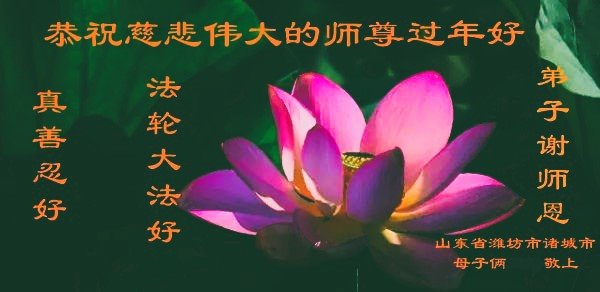 【明慧网二零二三年一月十九日】 山东省潍坊市诸城市大法弟子母子俩恭祝慈悲伟大的师尊过年好!