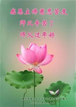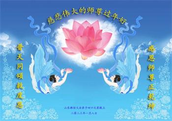 师尊您好!师尊辛苦了! 山东省潍坊市全体大法弟子恭祝慈悲伟大的师尊过年好!