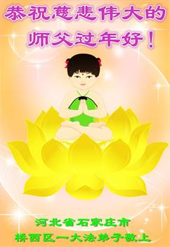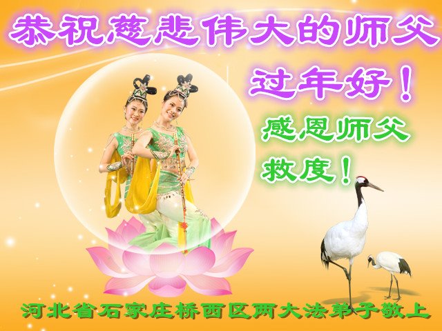 师父好!师父辛苦了! 弟子跟师父拜年了! 河北省石家庄桥西区俩大法弟子敬上 河北省石家庄市大法弟子恭祝师父过年好!
