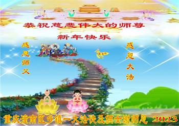 重庆潼南区乡镇一大法弟子携俩女恭祝慈悲伟大的师尊新年快乐!谢师恩!