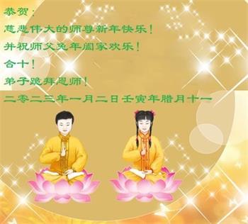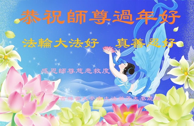 恭祝师尊过年好! 法轮大法好!真善忍好!感恩师尊慈悲救度! 吉林省大安市大法弟子夫妻跪拜 吉林省松原市一大法弟子恭祝师尊新年快乐!