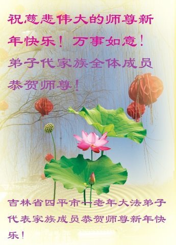 祝慈悲伟大的师尊新年快乐! 弟子代表家族全体成员恭祝师尊! 吉林省四平市一老年大法弟子携家族成员恭祝师尊新年快乐! 吉林省四平市一老年大法弟子携家族成员恭祝师尊新年快乐!
