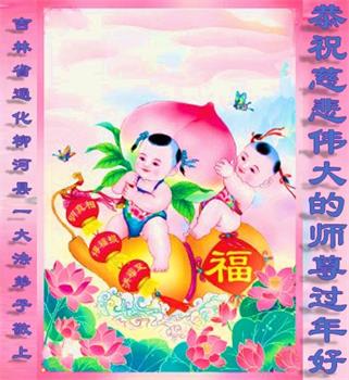 恭祝慈悲伟大的师尊过年好! 感恩师尊救度! 吉林省松原地区扶余市大法弟子合十敬上 吉林省白城市大安市大法弟子携一家祖孙三代世人恭祝师尊过年好!