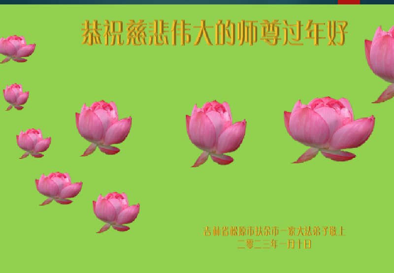 【明慧网二零二三年一月十九日】 吉林省通化柳河县一大法弟子恭祝慈悲伟大的师尊过年好!