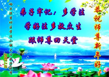 黑龙江省哈尔滨一学法小组大法弟子恭祝师尊新年愉快!