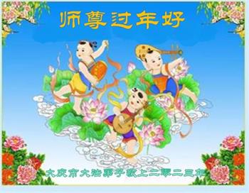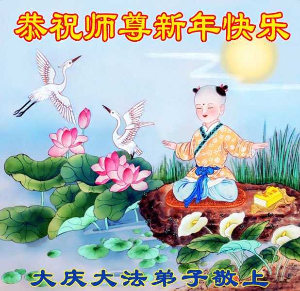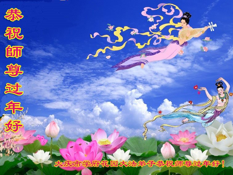 感谢师尊慈悲救度之恩 黑龙江省大庆东风新村景程小区俩大法弟子恭祝师父新年快乐!
