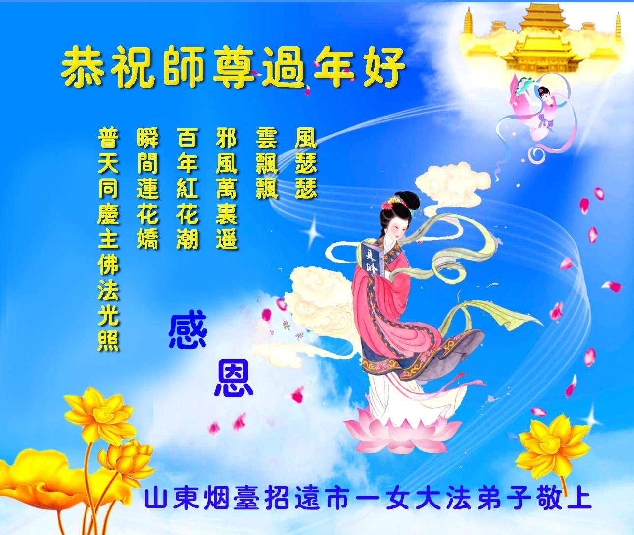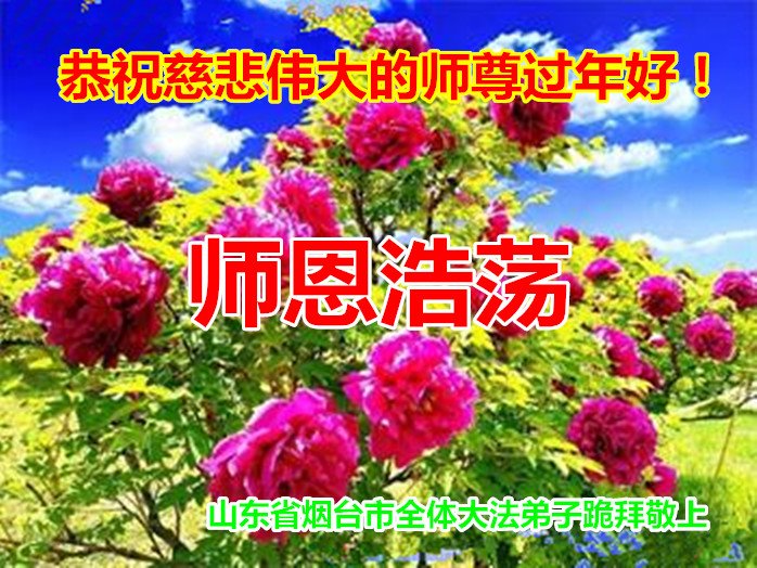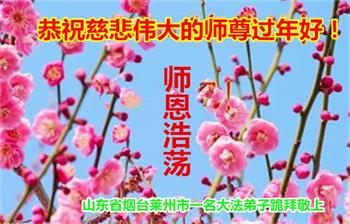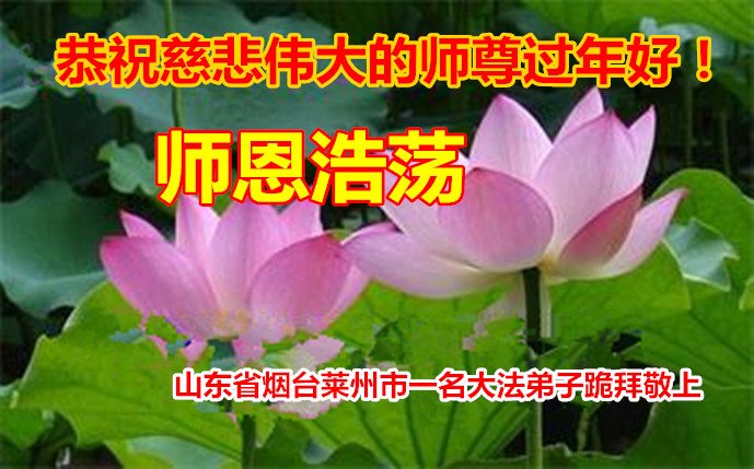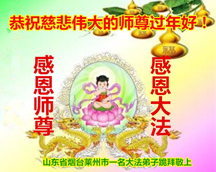 恭祝慈悲伟大的师尊过年好! 山东省烟台莱州市全体大法弟子敬上 山东淄博全体大法弟子恭祝师尊过年好!