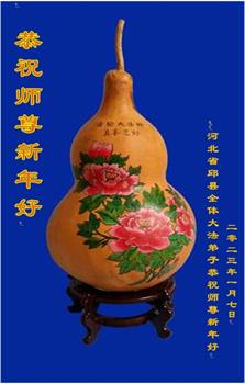 师父新年好!我们全体大法弟子一定做好三件事,完成历史赋予我们的神圣使命,成就师尊所要的,请师父放心。 任丘市全体大法弟子叩拜! 河北省全体大法弟子恭祝慈悲伟大的恩师新年快乐!