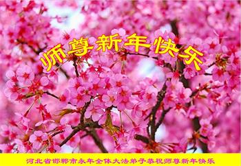 邱县全体大法弟子恭祝师尊新年快乐!感恩师尊慈悲救度! 我们要更加努力做好三件事,以谢师恩。 叩谢师尊! 河北省邯郸市永年全体大法弟子恭祝师尊新年快乐!