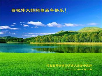 在新的一年里,学好法,做好三件事,精進实修,坚决跟师父回家。 河北省邢台市沙河市大法弟子恭祝师尊新年快乐!