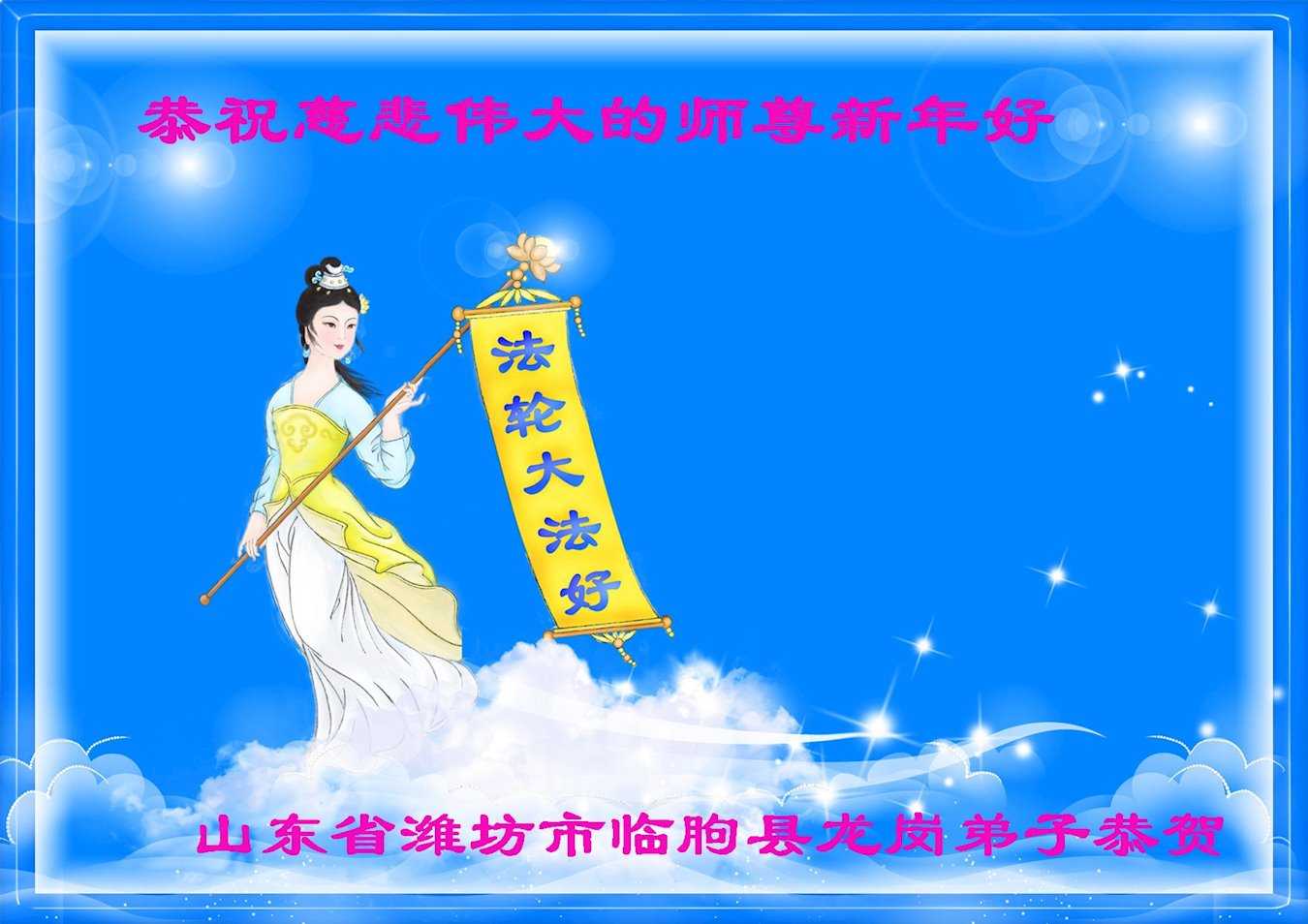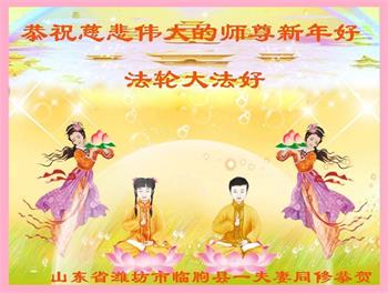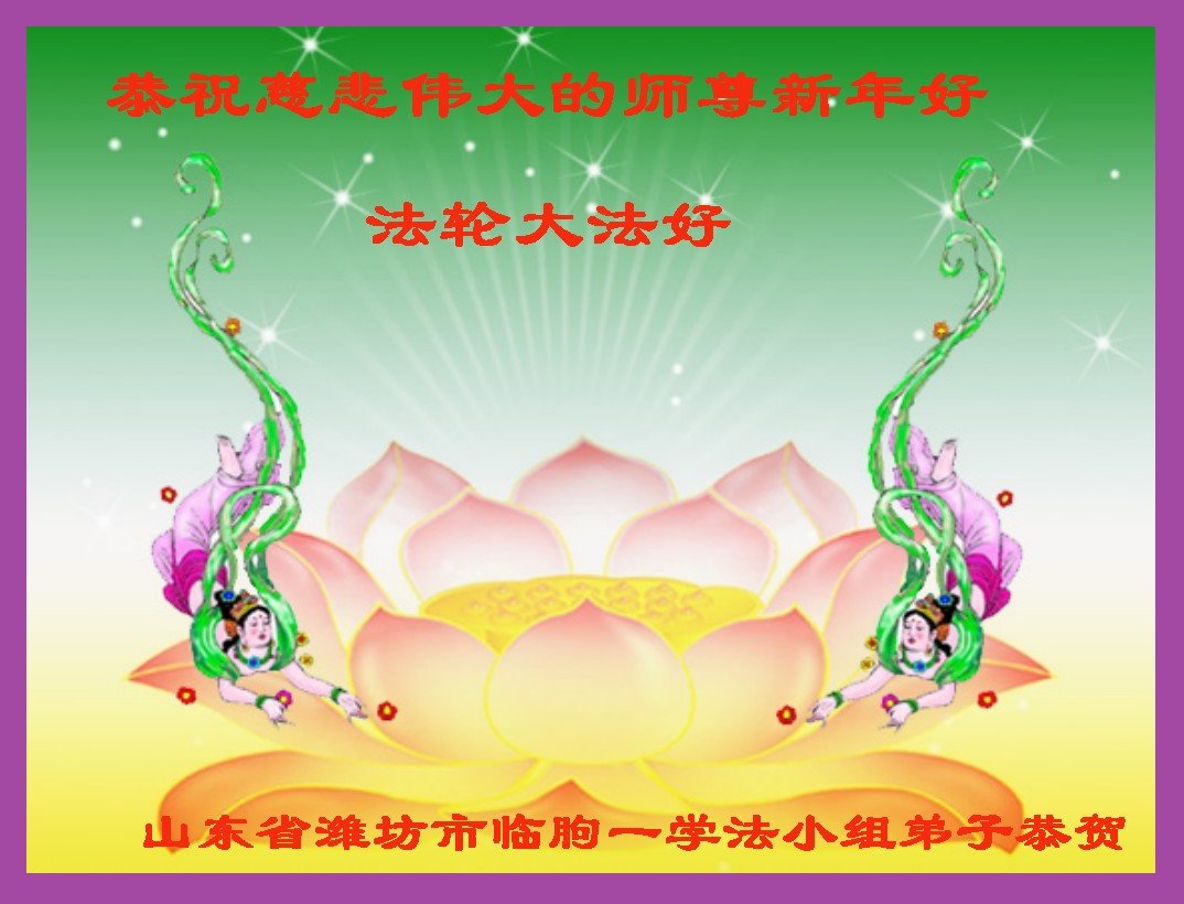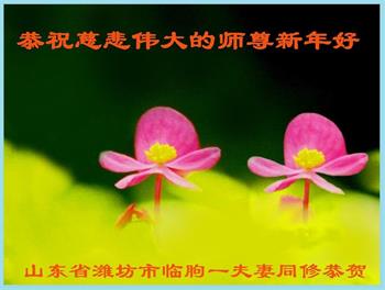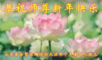 恭祝慈悲伟大的师尊新年好! 山东省潍坊市临朐县杨善弟子敬贺 山东省潍坊市临朐县一夫妻大法弟子恭祝慈悲伟大的师尊新年好!