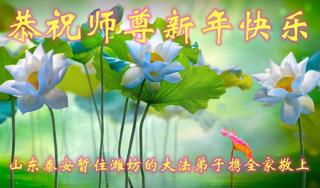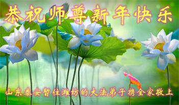 山东泰安暂住潍坊的大法弟子携全家人恭祝师尊新年快乐!