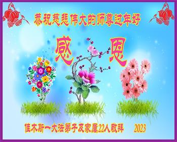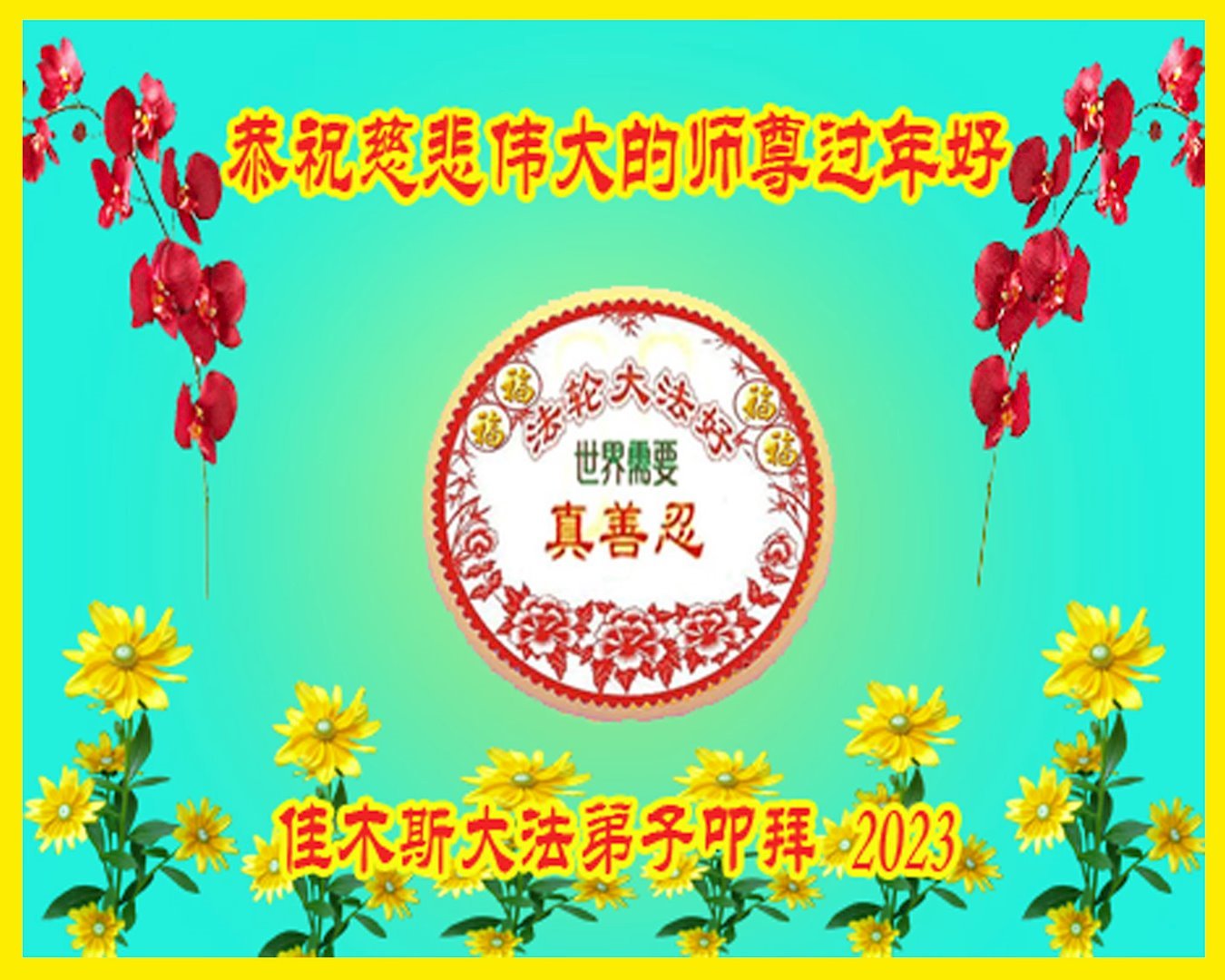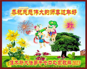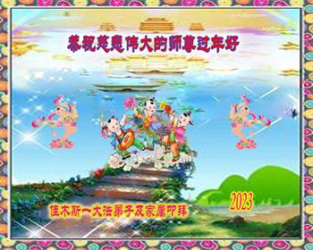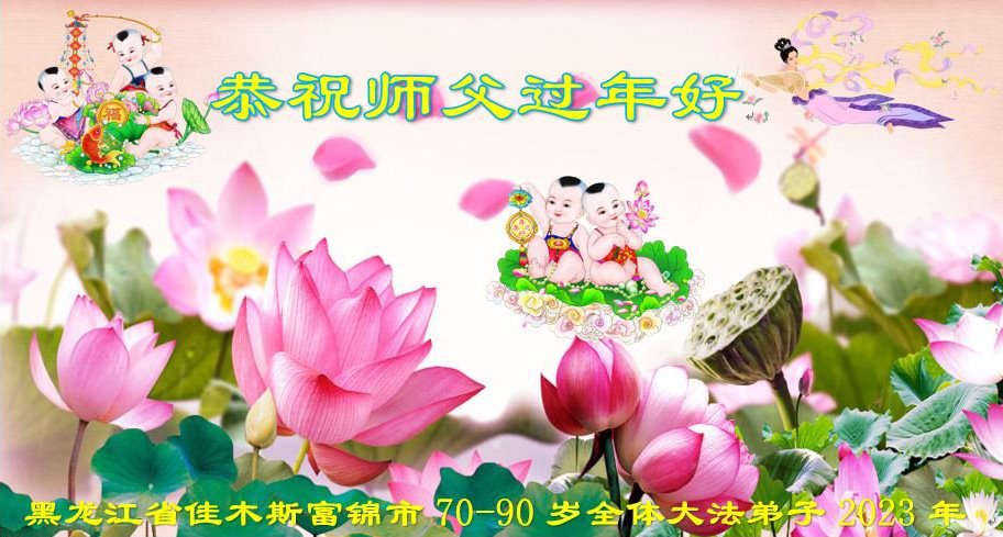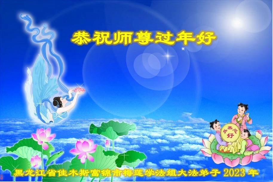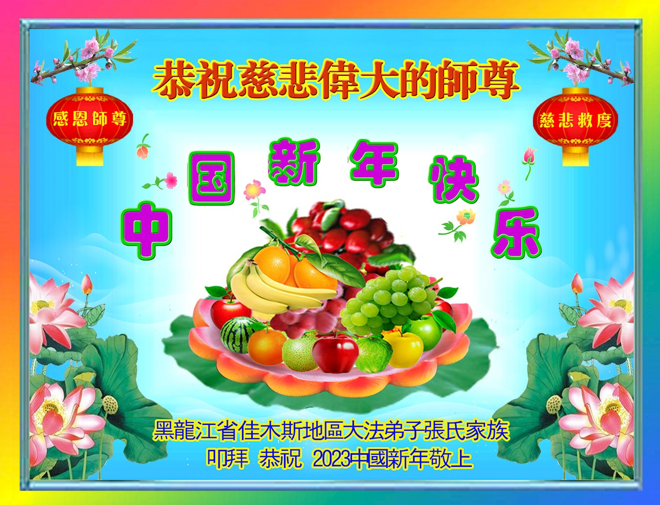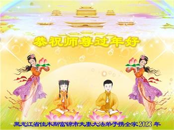 【明慧网二零二三年一月十九日】 黑龙江省佳木斯富锦市夫妻大法弟子携全家恭祝师父过年好!