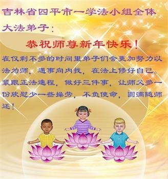延吉市大法弟子恭祝师尊新年快乐!师父您辛苦了,在新的一年弟子们要更加努力做好三件事,谢师恩! 吉林省松原市一家大法弟子恭祝师尊新年好!