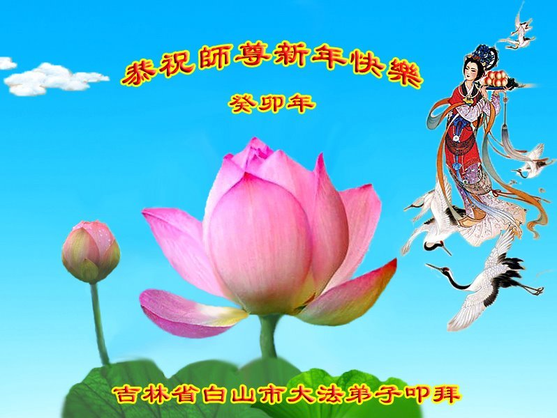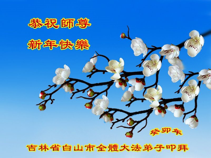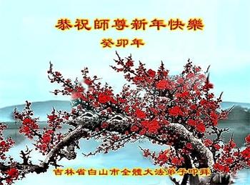 吉林省白山市大法弟子叩拜 吉林省白山市全体大法弟子恭祝师尊新年快乐!