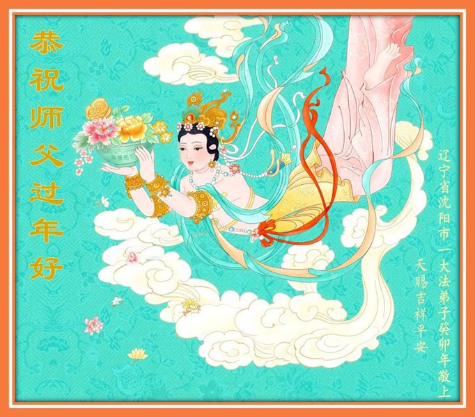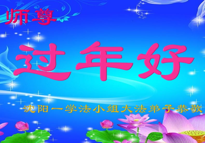 恭祝慈悲伟大的师尊过年好!弟子一定走好师尊安排的路,精進实修,跟师尊回家。 辽宁沈阳市铁西区一老年大法弟子敬上 辽宁省沈阳大法弟子恭祝师尊新年快乐!