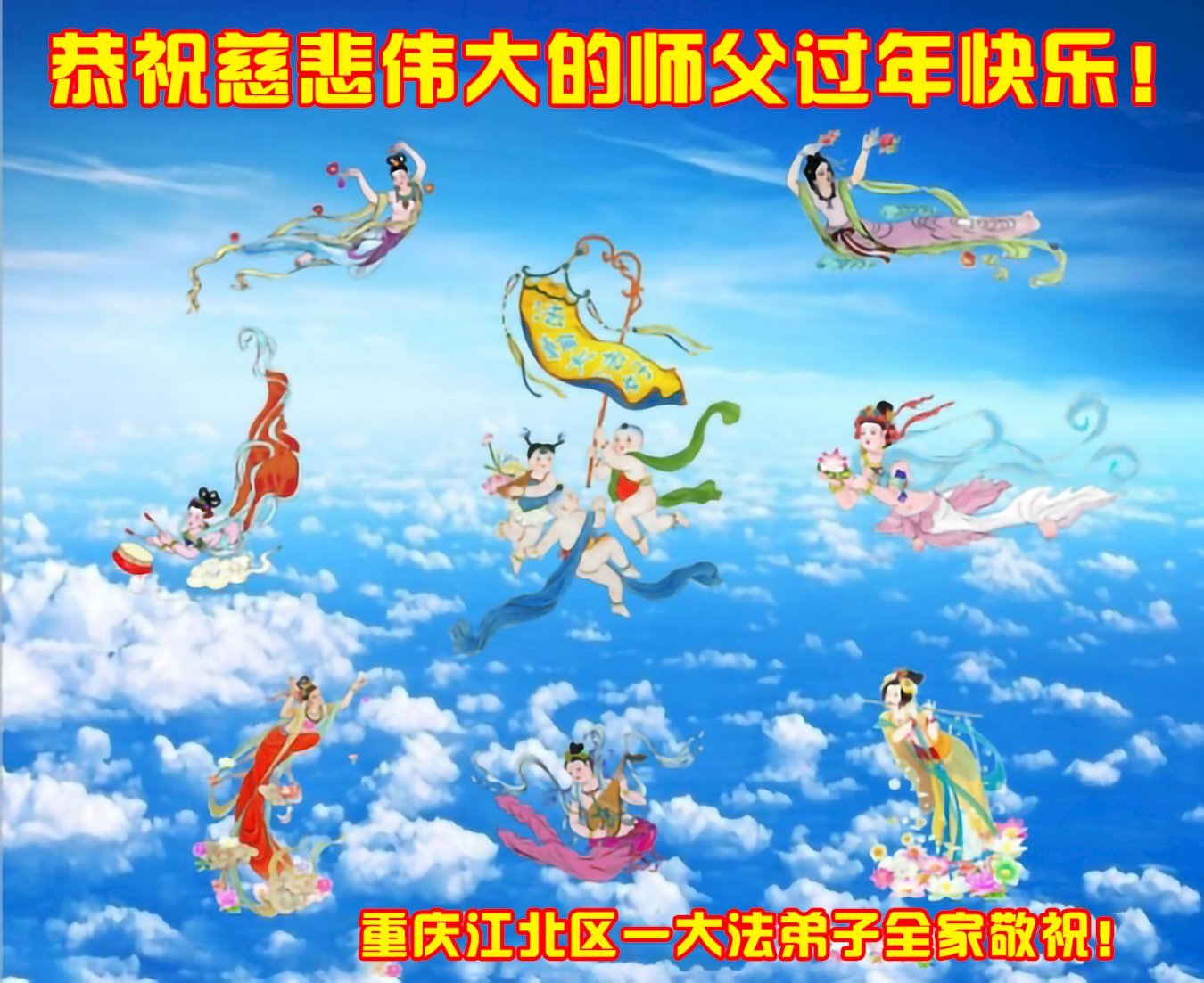 重庆市长寿区一大法弟子学法点全体大法弟子给师尊拜年,弟子们感谢师尊的慈悲救度,叩拜师尊!恭祝师尊新年快乐! 重庆江北区一大法弟子全家恭祝慈悲伟大的师父过年快乐!-