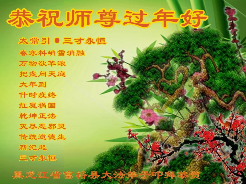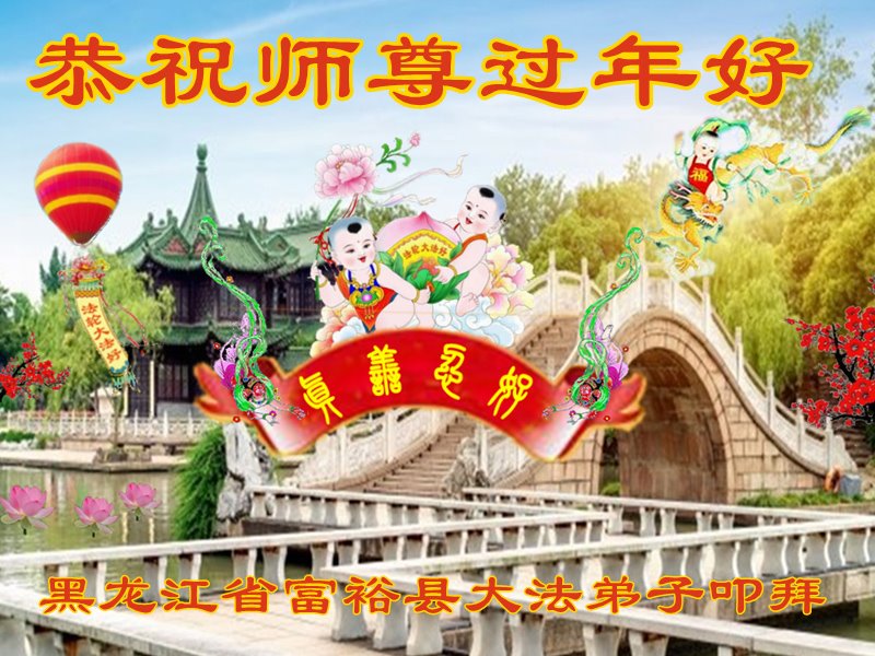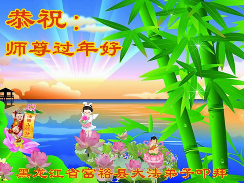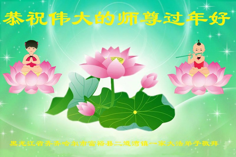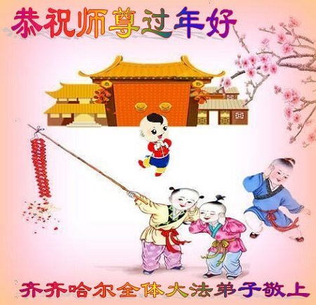 齐齐哈尔全体大法弟子敬上 黑龙江省齐齐哈尔市富裕县一大法弟子恭祝师尊过年好!