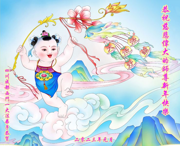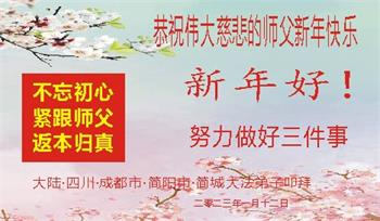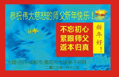 【明慧网二零二三年一月十九日】 四川省成都市龙泉驿区大法弟子恭祝师尊中国新年好!