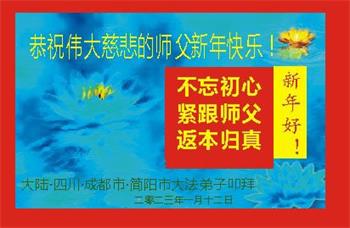 四川成都市简阳市大法弟子恭祝师父新年快乐!