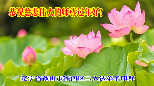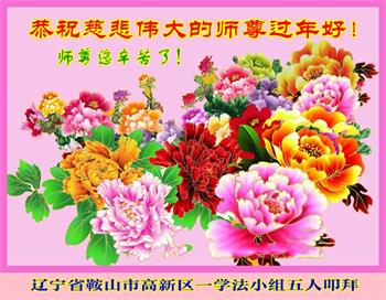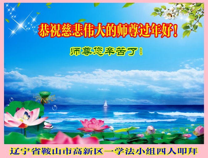 辽宁省鞍山市铁西区二名大法弟子给慈悲伟大的师尊拜年:恭祝师尊过年好! 叩谢师尊救度洪恩! 辽宁省鞍山市高新区一学法小组五位大法弟子恭祝师尊过年好!