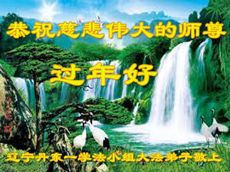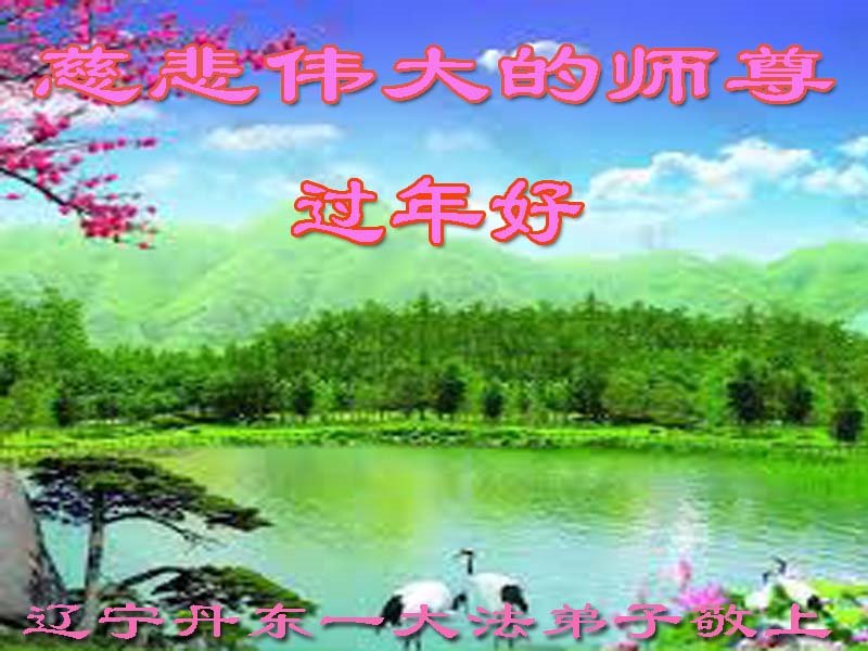 恭祝慈悲伟大师尊新年快乐! 辽宁抚顺新宾全体大法弟子敬上 辽宁省丹东市一大法弟子恭祝师父过年好!
