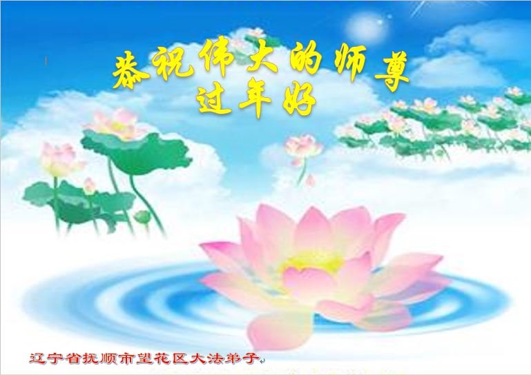 辽宁省鞍山市高新区四名大法弟子给慈悲伟大的师尊拜年:恭祝师尊过年好! 叩谢师尊救度洪恩! 辽宁省抚顺市望花区全体大法弟子恭祝慈悲伟大的师尊过年快乐!