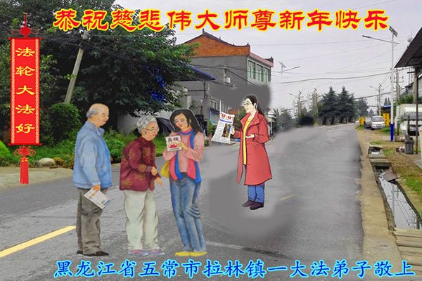 黑龙江省哈尔滨市五常市拉林镇一大法弟子恭祝慈悲伟大的师尊新年快乐!