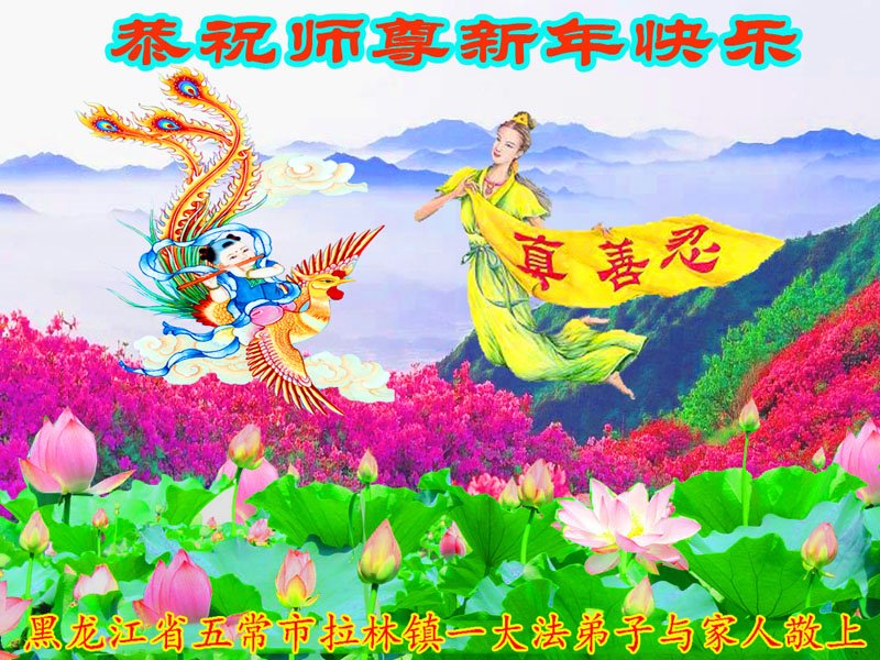 弟子给您拜年了!师尊过年好!师尊过年快乐!感谢师尊慈悲救度!叩拜师尊! 黑龙江哈尔滨木兰县全体大法弟子恭祝慈悲伟大的师尊过年好!