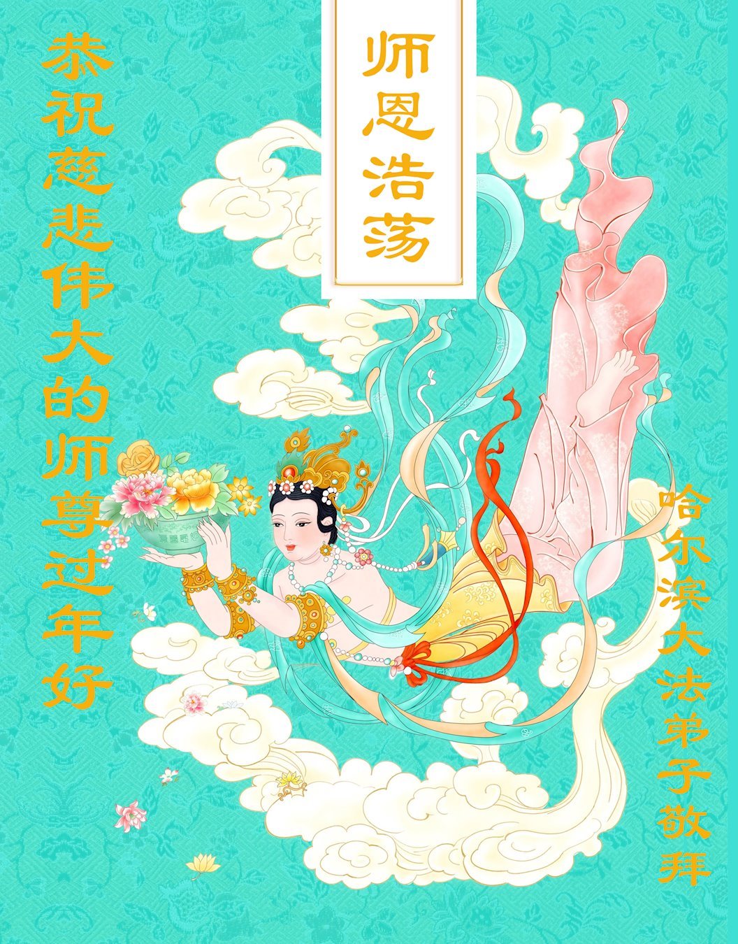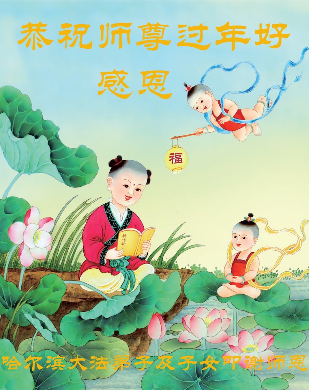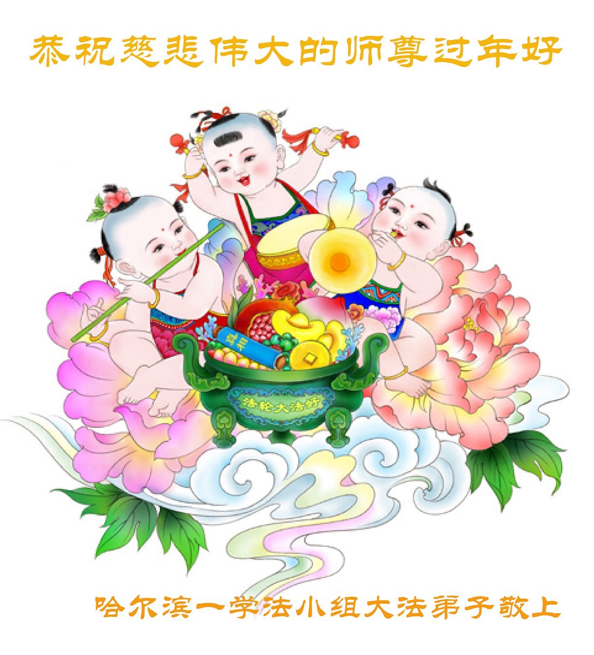 哈尔滨大法弟子恭祝慈悲伟大的师尊过年好! 黑龙江省哈尔滨大法弟子及子女恭祝慈悲伟大的师尊过年好!