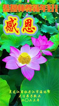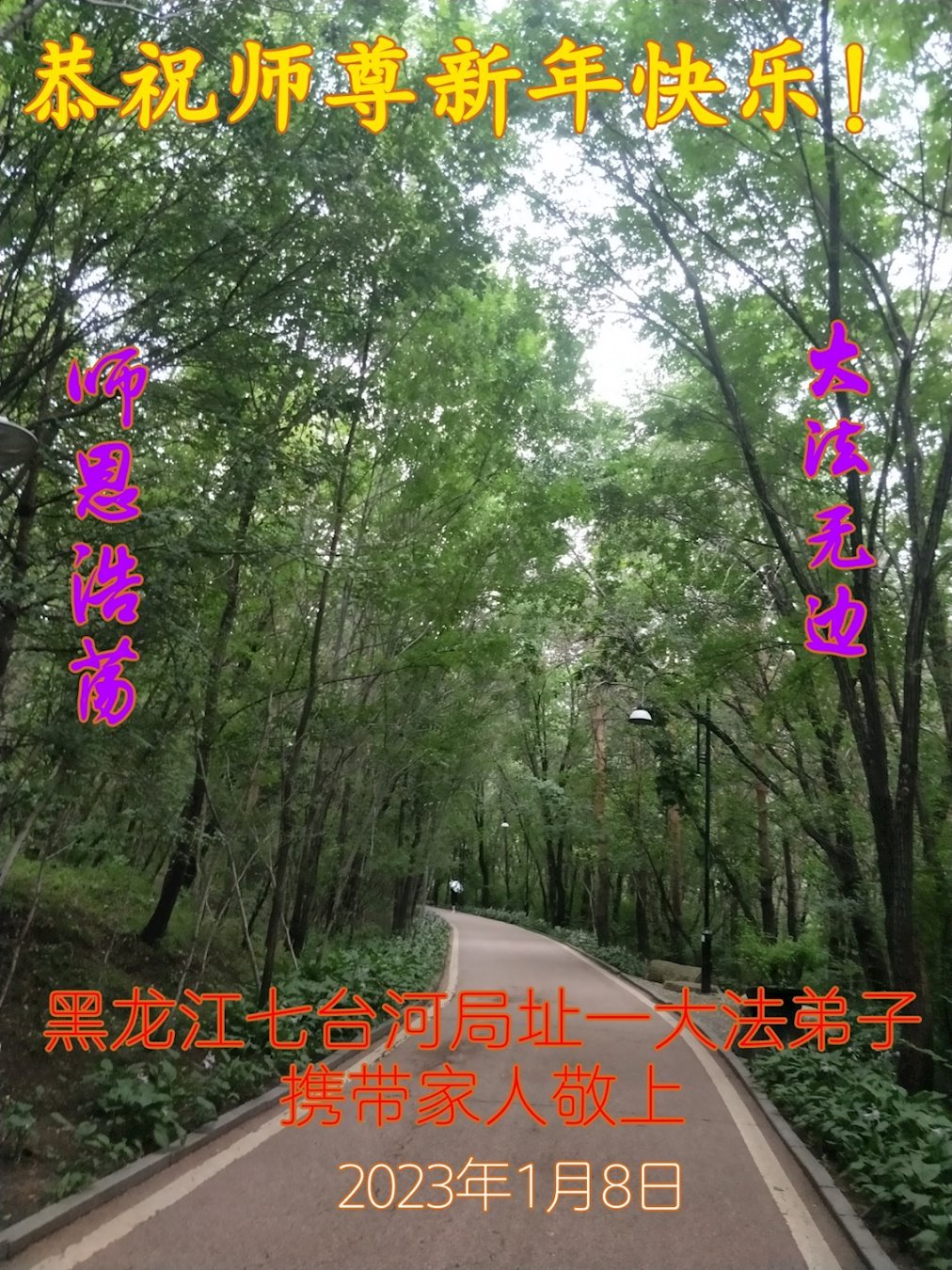 我们全家都沐浴在师父的法中,无限感恩师尊对我全家的慈悲救度和一路保护!在新的一年到来之际,我要修好自己,精進实修,多救人!感恩师尊慈悲苦度!师尊您辛苦了! 叩拜伟大的师尊! 2023年1月11日 黑龙江省七台河市勃利县一名大法弟子恭祝师尊过年好!