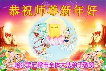 黑龙江省哈尔滨阿城区一学法小组大法弟子向慈悲伟大师尊拜年!