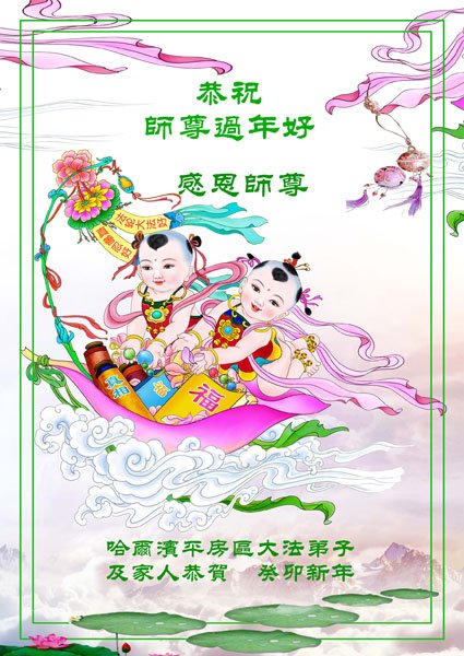 黑龙江省哈尔滨市平房区大法弟子及家人恭祝师父过年好!