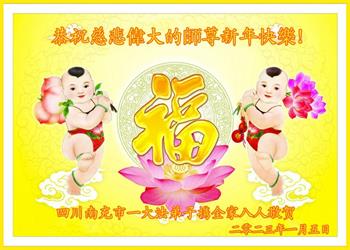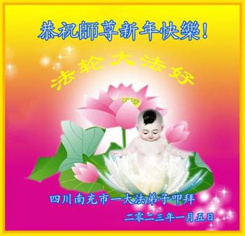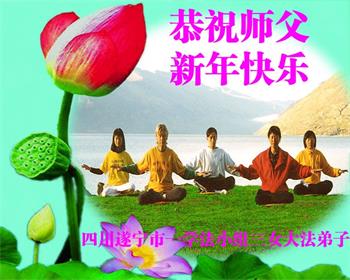 感谢师尊保护!我一定修好自己,多救人。 四川遂宁市全体大法弟子恭祝师尊新年快乐!