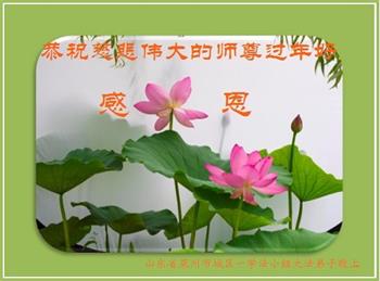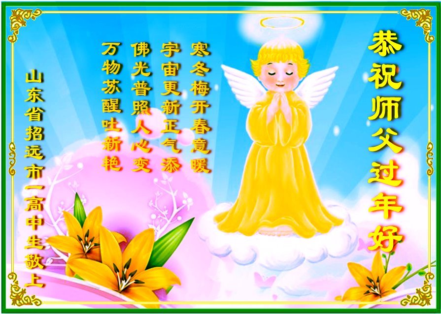 父母修炼我受益 体健事顺多赢利 尊老爱幼是传统 三字真言记心里 多谢师父把我救 尘世不染出污泥 烟台招远市一大法弟子的女儿敬贺 山东省烟台市招远市一高中生恭祝师父过年好!