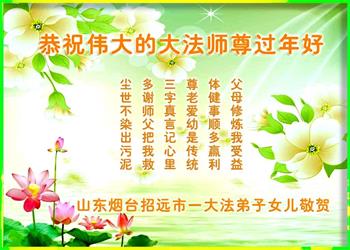 山东省梁山县母女大法弟子恭祝慈悲伟大的师尊过年好! 山东省烟台地区莱州市一大法弟子恭祝慈悲伟大的师尊过年好!