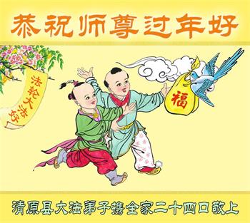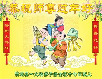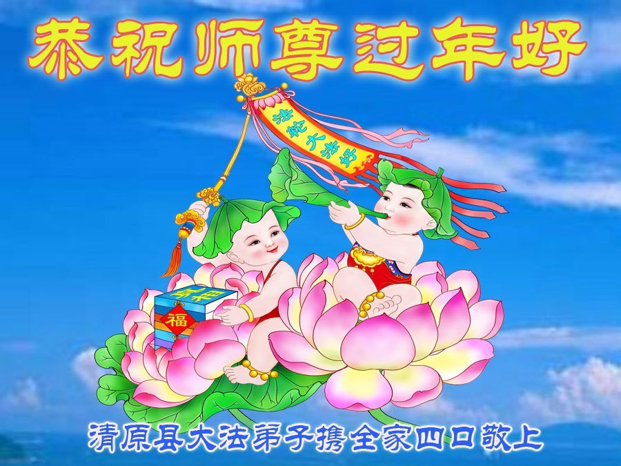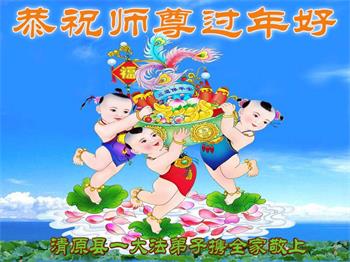 辽宁省抚顺市清原县一大法弟子携全家恭祝师尊过年好!